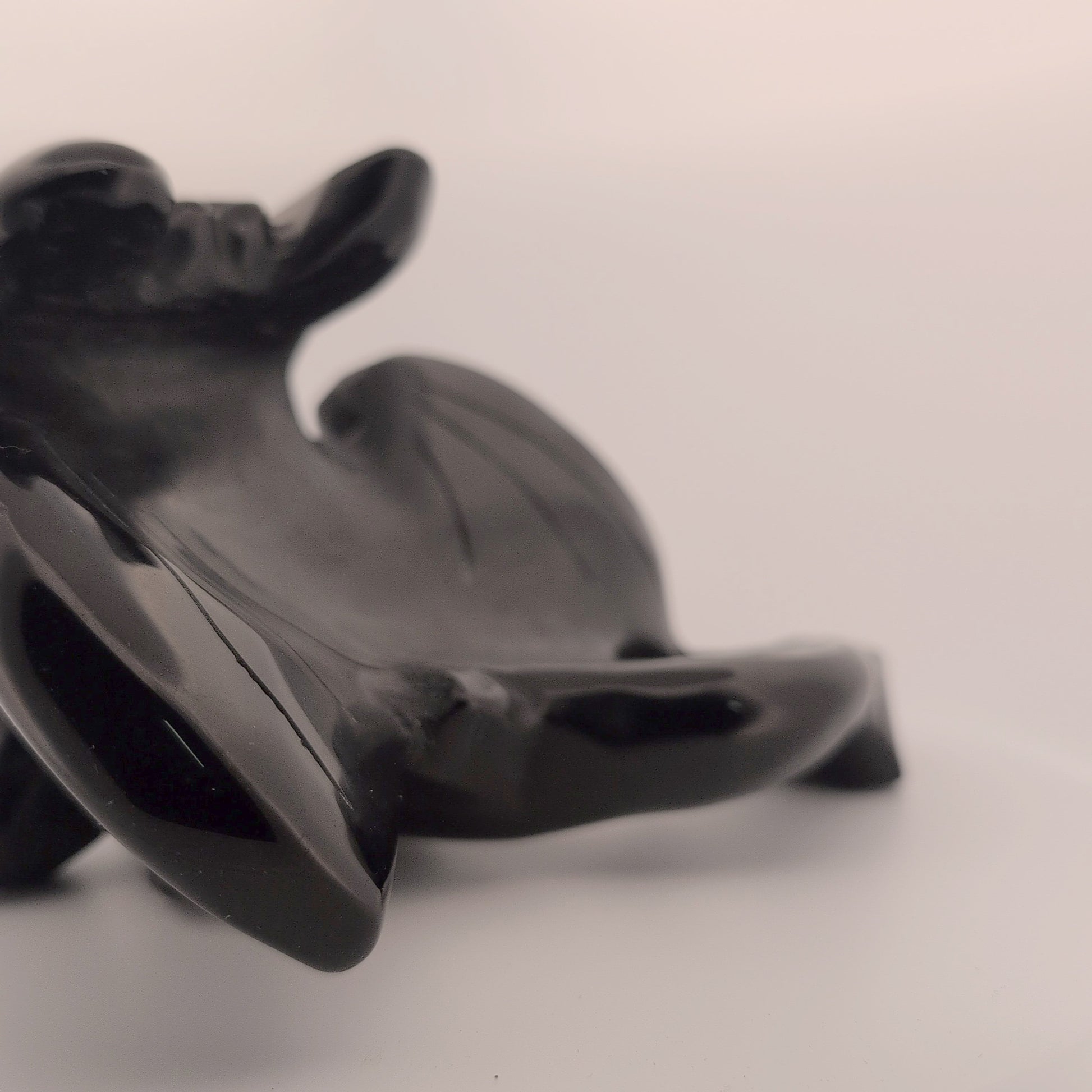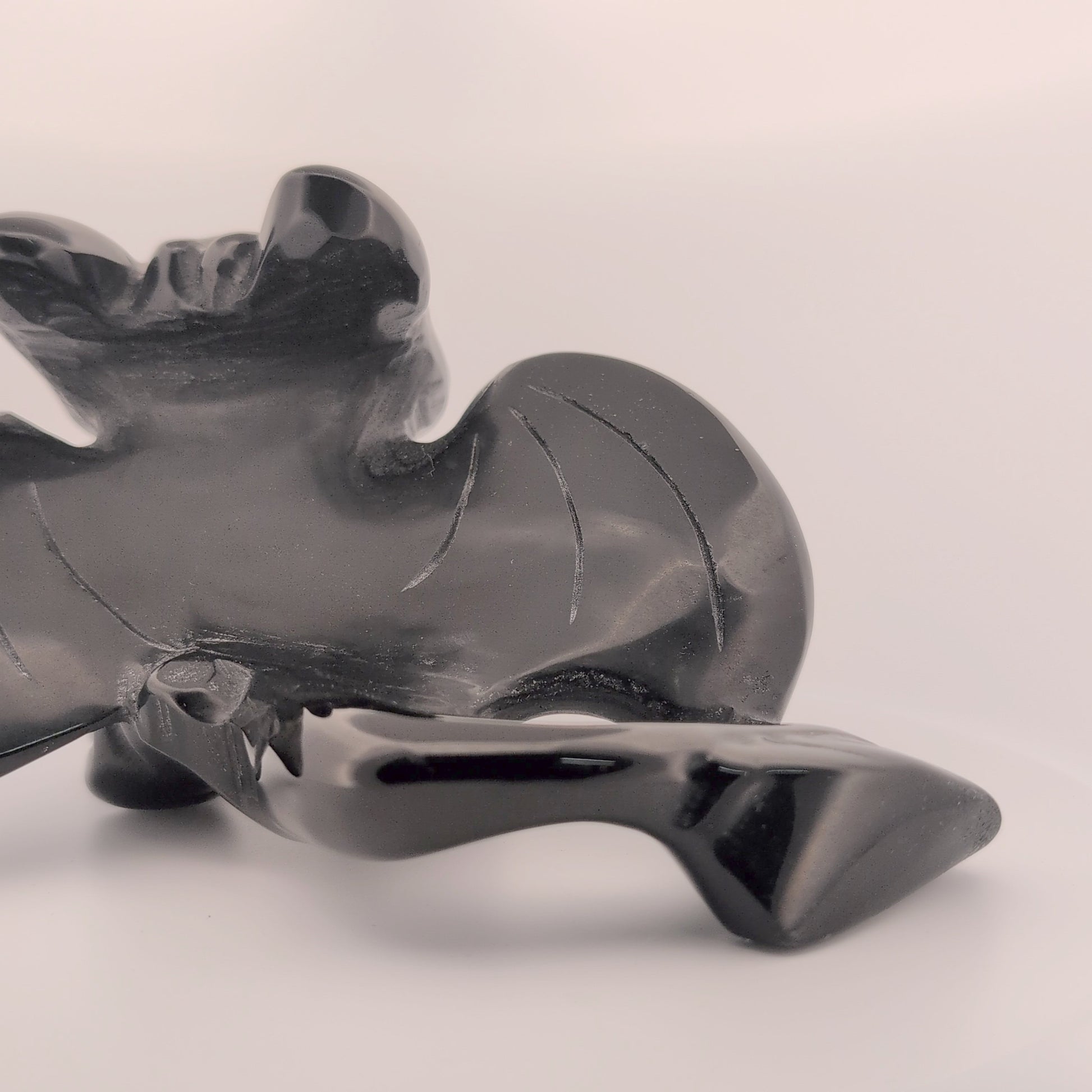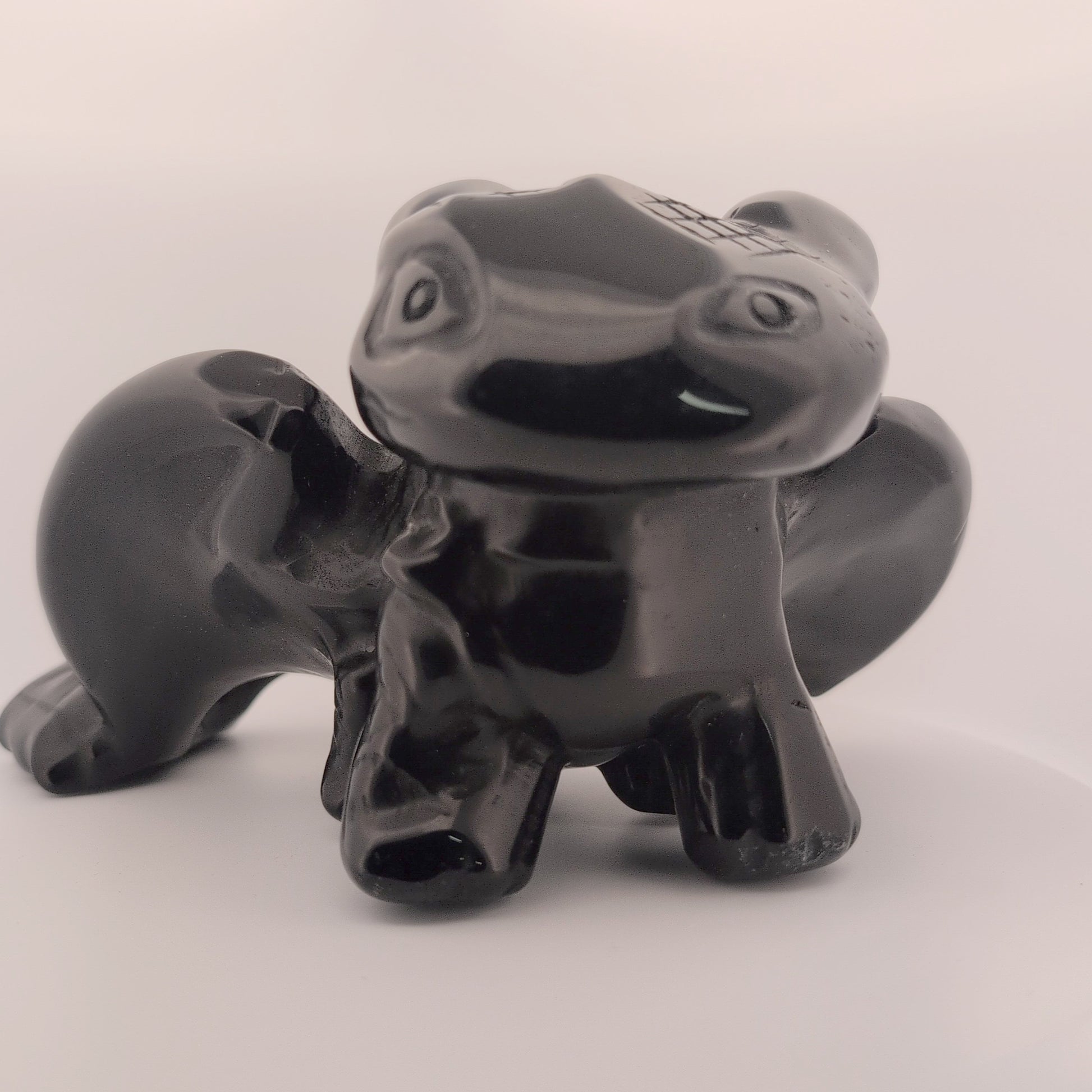Hand-carved volcanic glass dragon with a sleek, mirror-black polish