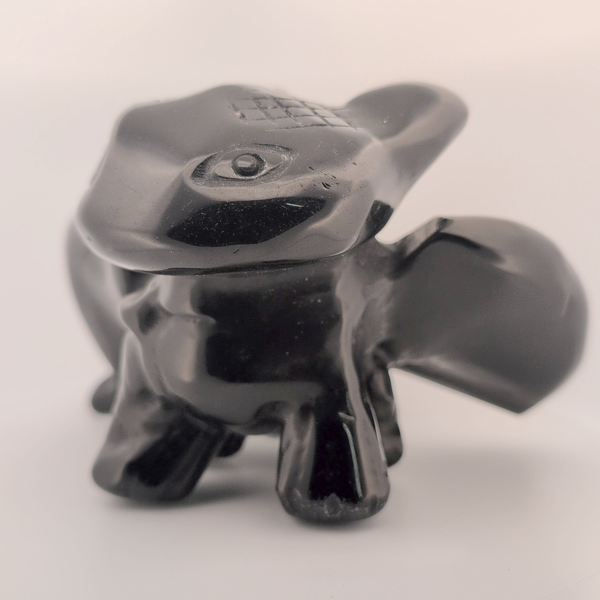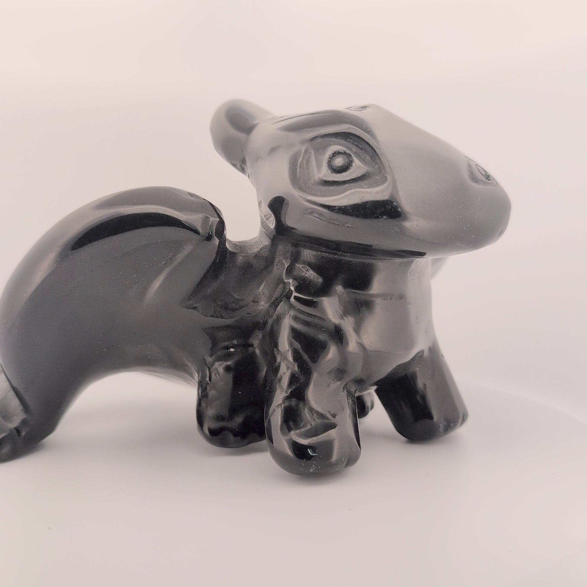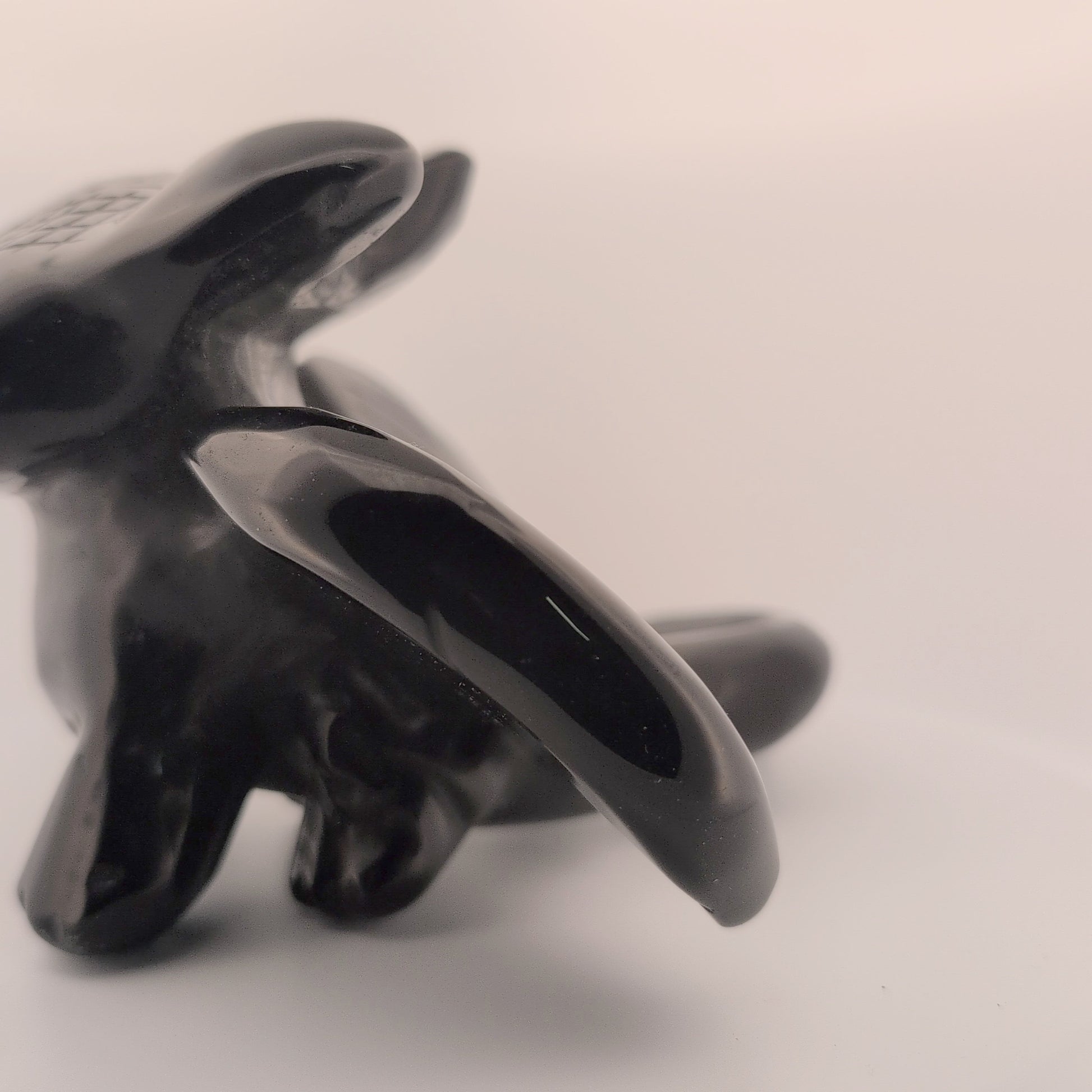 Hand-carved volcanic glass dragon with a sleek, mirror-black polish
