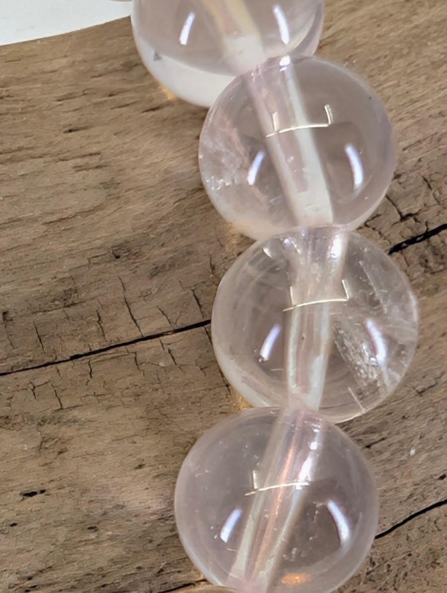 This 8mm bracelet offers a serene, ethereal aesthetic. The beads possess a luminous, high-clarity matrix with a delicate, "whisper-pink" saturation. The professional high-gloss polish highlights the internal "veils" and silky textures that prove its natural, untreated origin. Under a single light source, the "Star Flash" effect creates a kinetic shimmer that moves across the wrist, offering a more dynamic visual experience than standard opaque rose quartz.