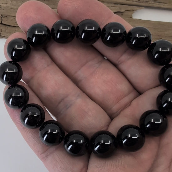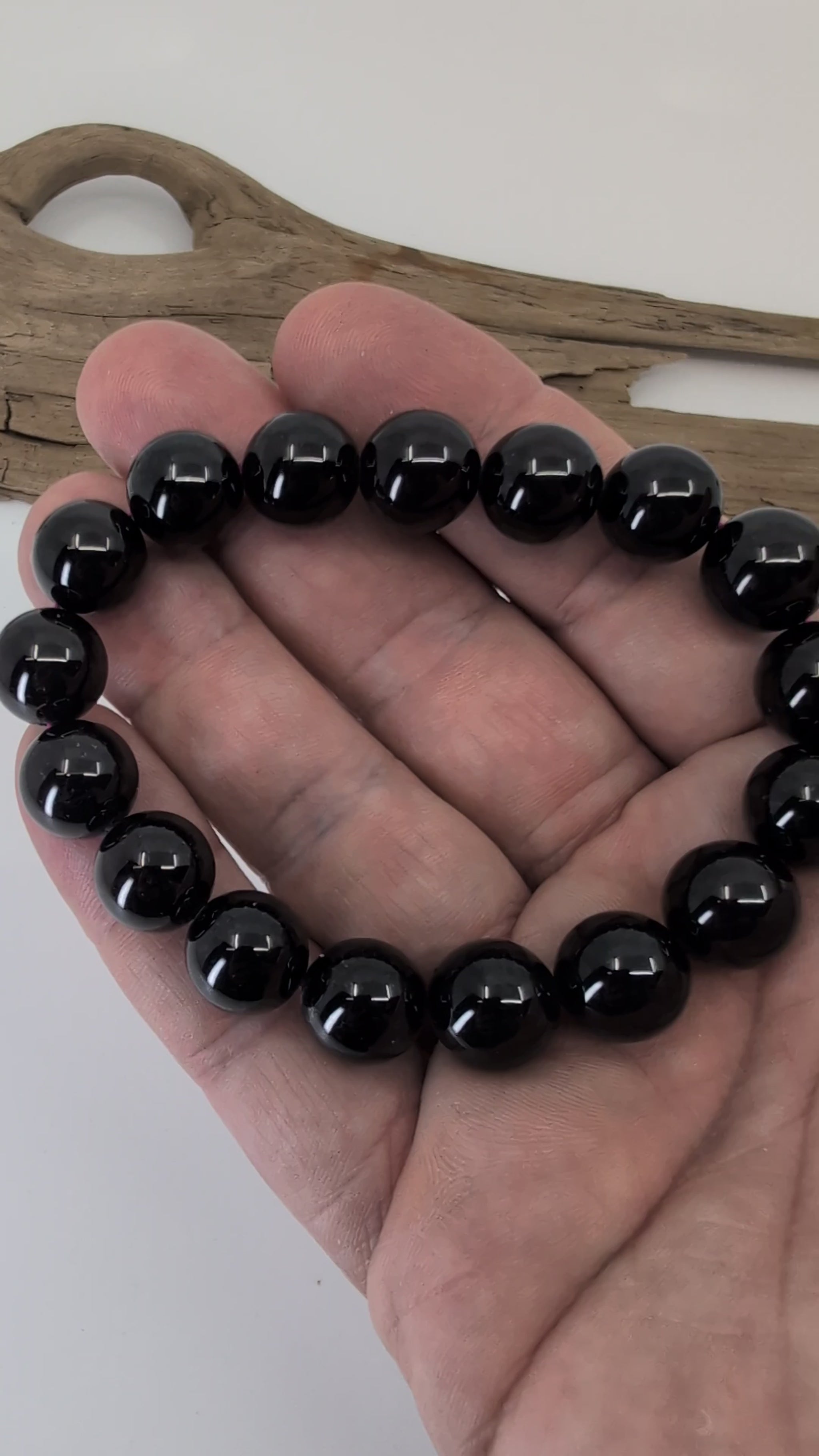 In soft light, this bracelet appears sleek and black; in bright light, it reveals deep crimson hues and flashes of red fire. It pairs beautifully with silver or gold accents and stands alone as a statement piece with depth and sophistication.